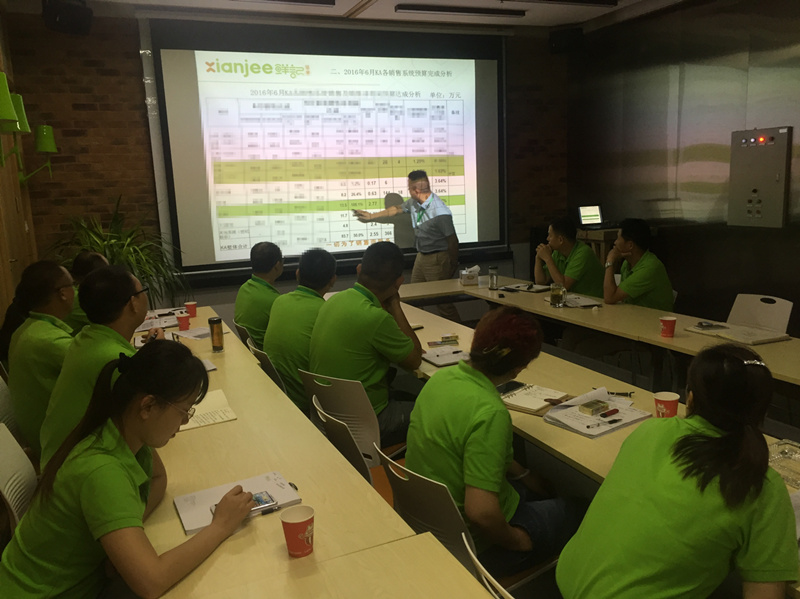 ▲图为营销总监陈总对6月份销售情况作汇报